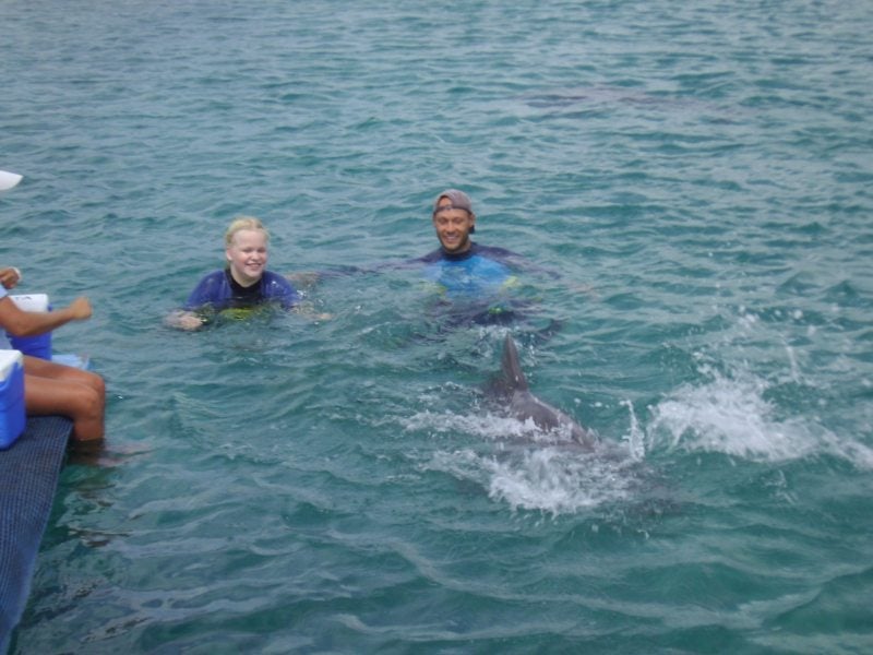 hallo Nicolette wat heb je een mooi pak aan ,en spelen met de dolfijnen succes meisje ,groet Arie & Anneke