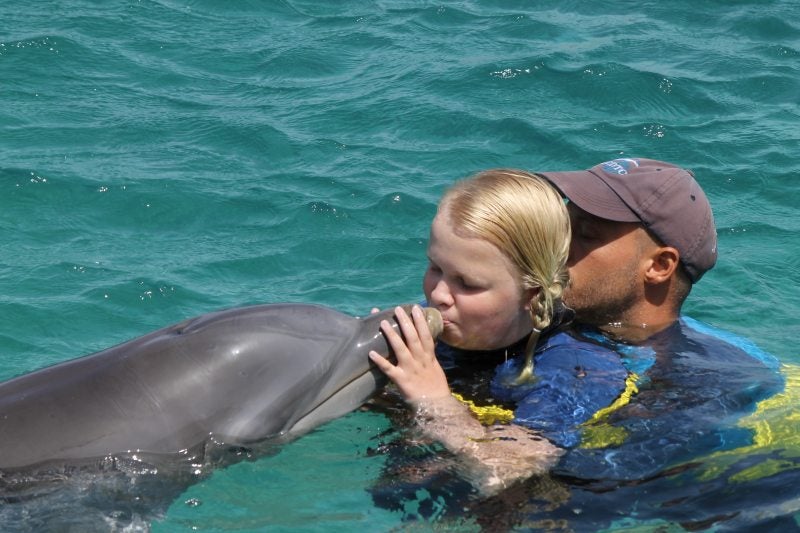 één van de favoriete bezigheden van nicolette met de dolfijn in het water