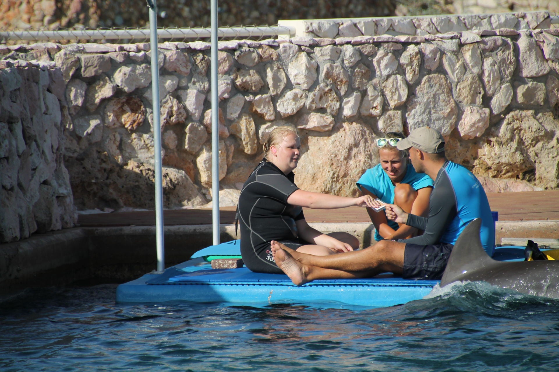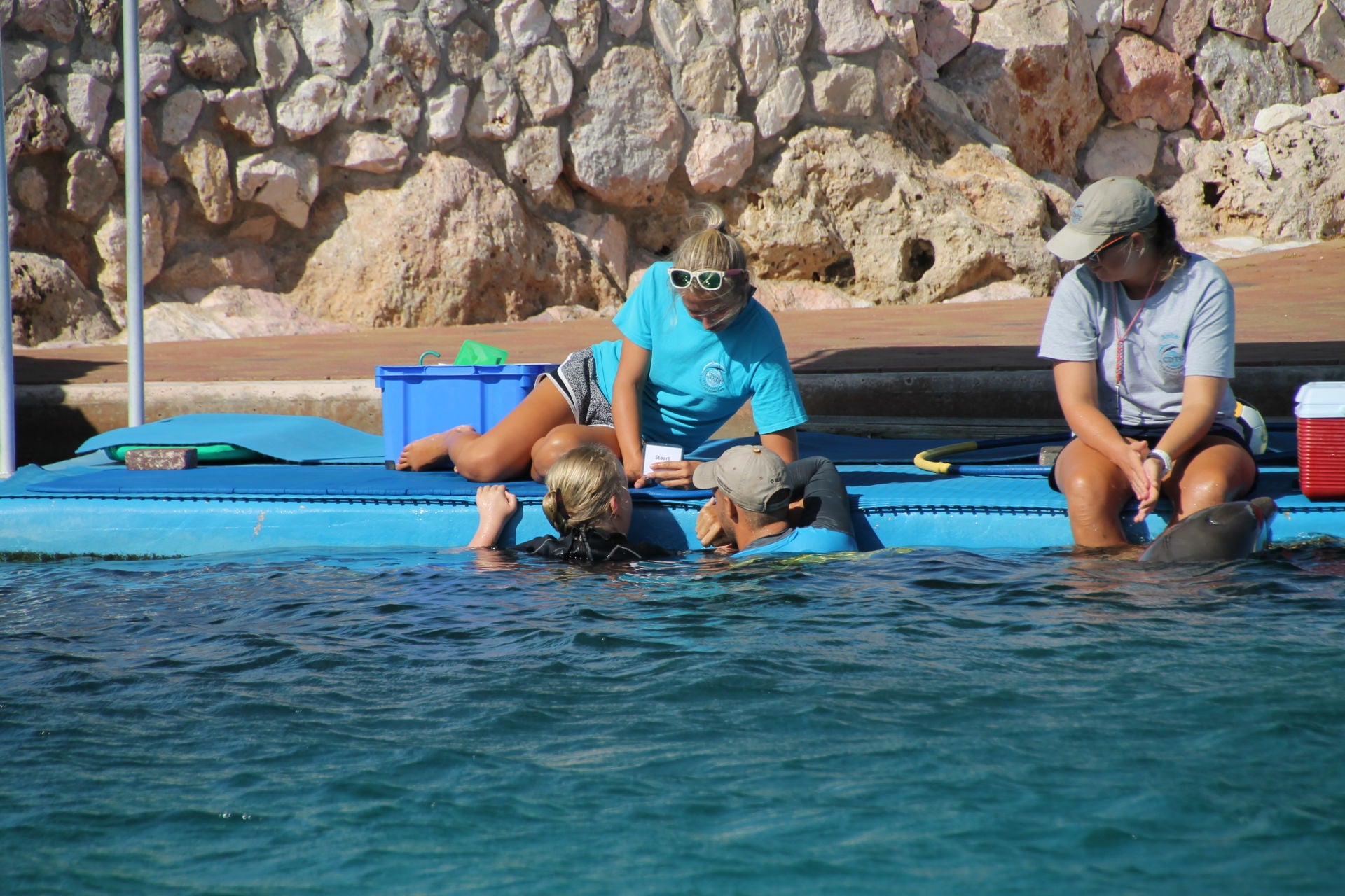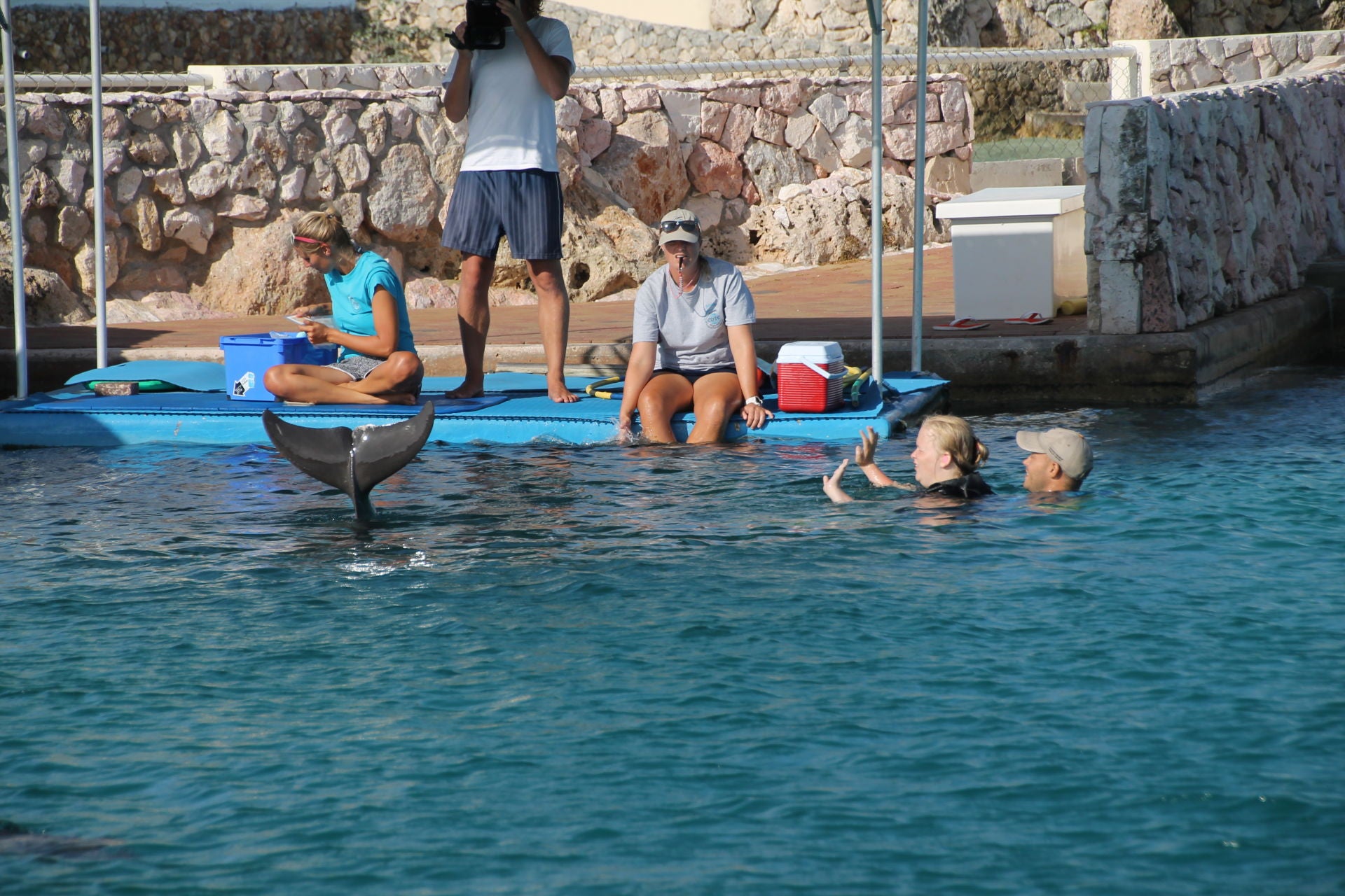 Nicolette geeft opdracht om de dolfijn te laten zwaaien met zijn staart