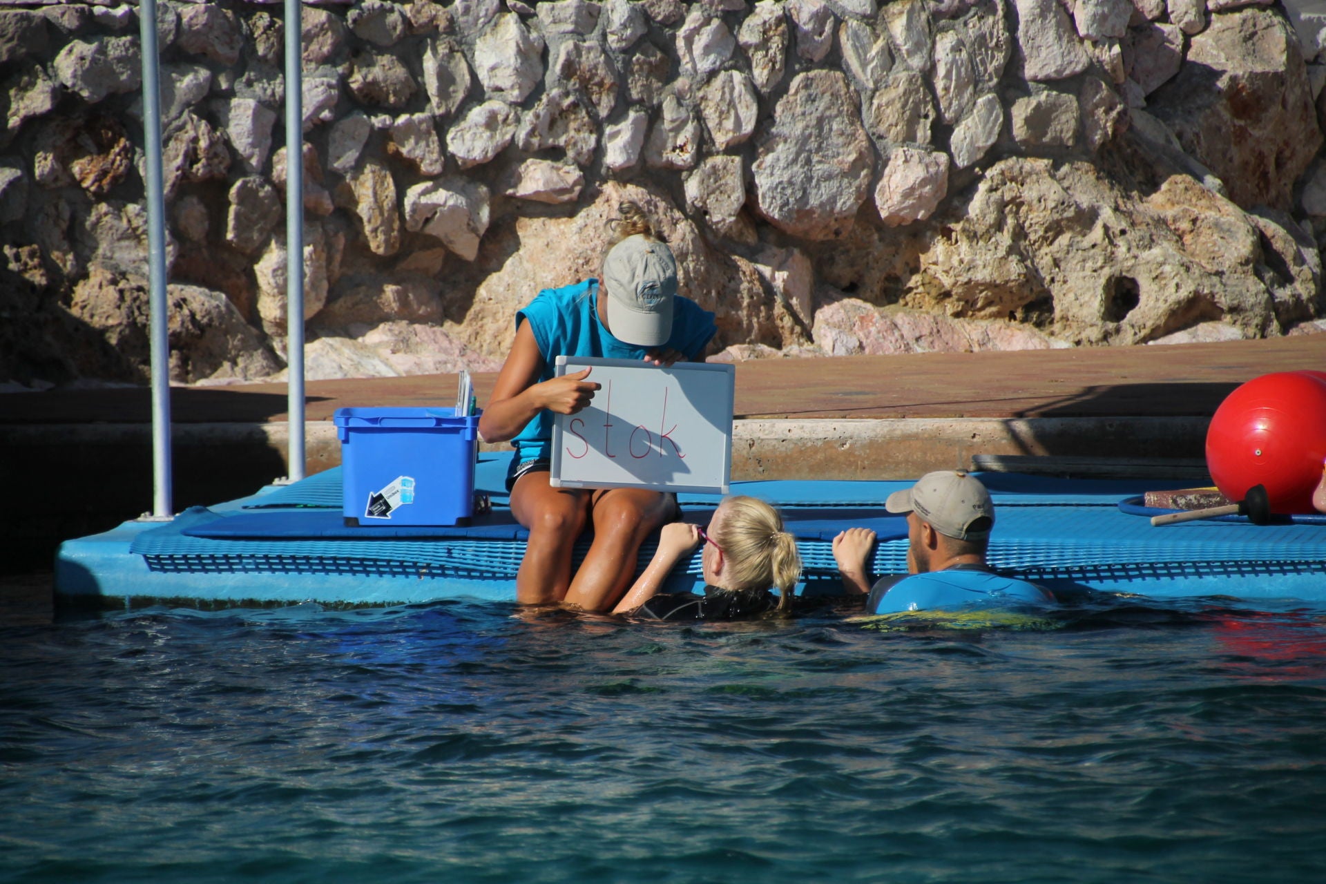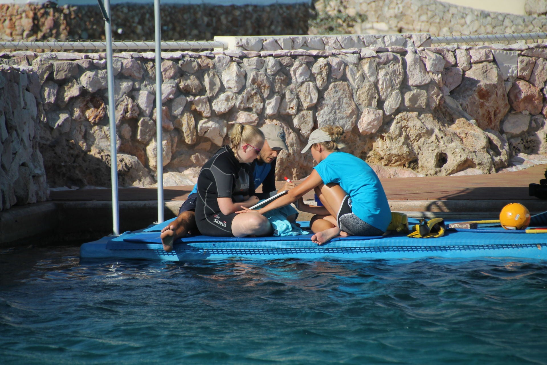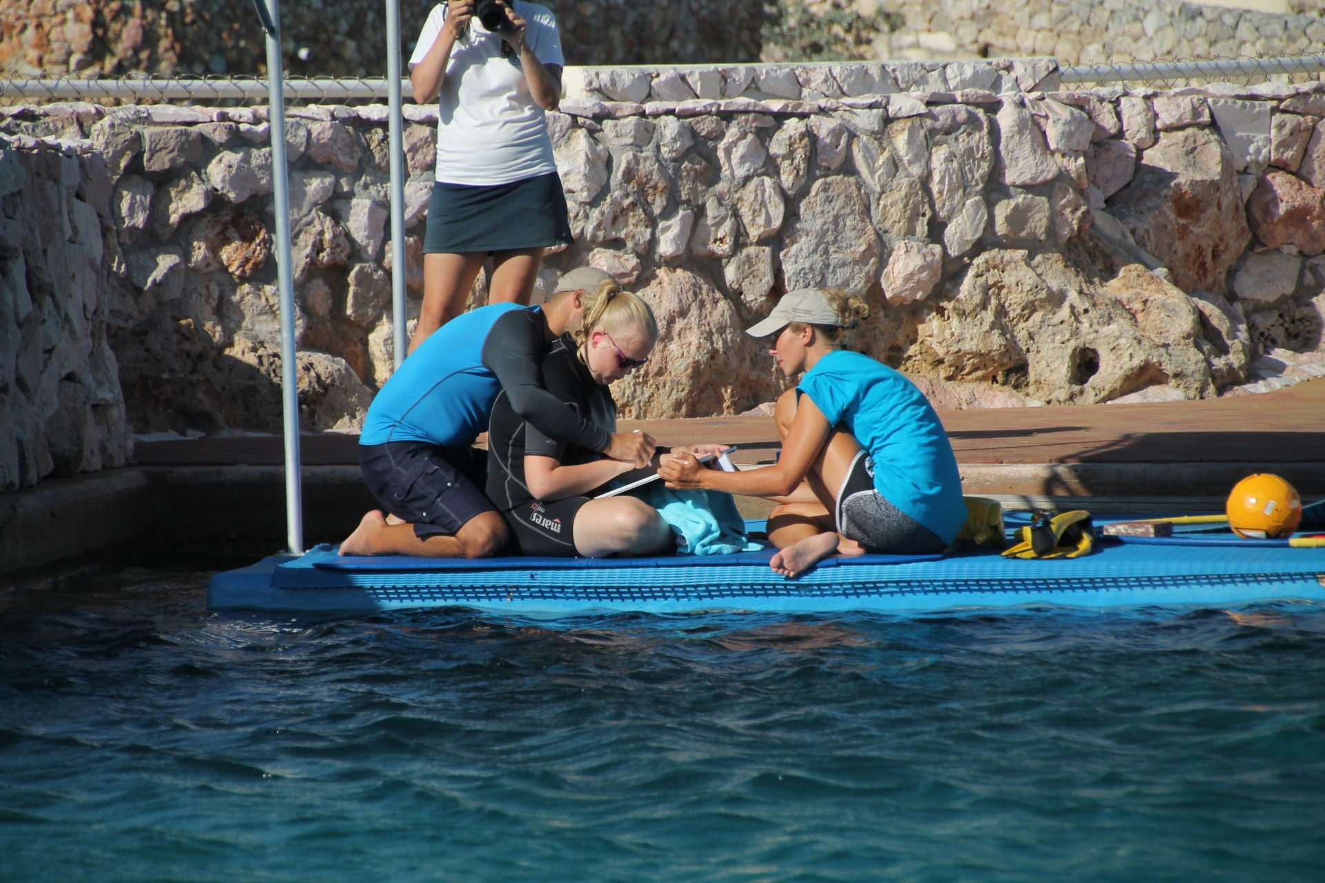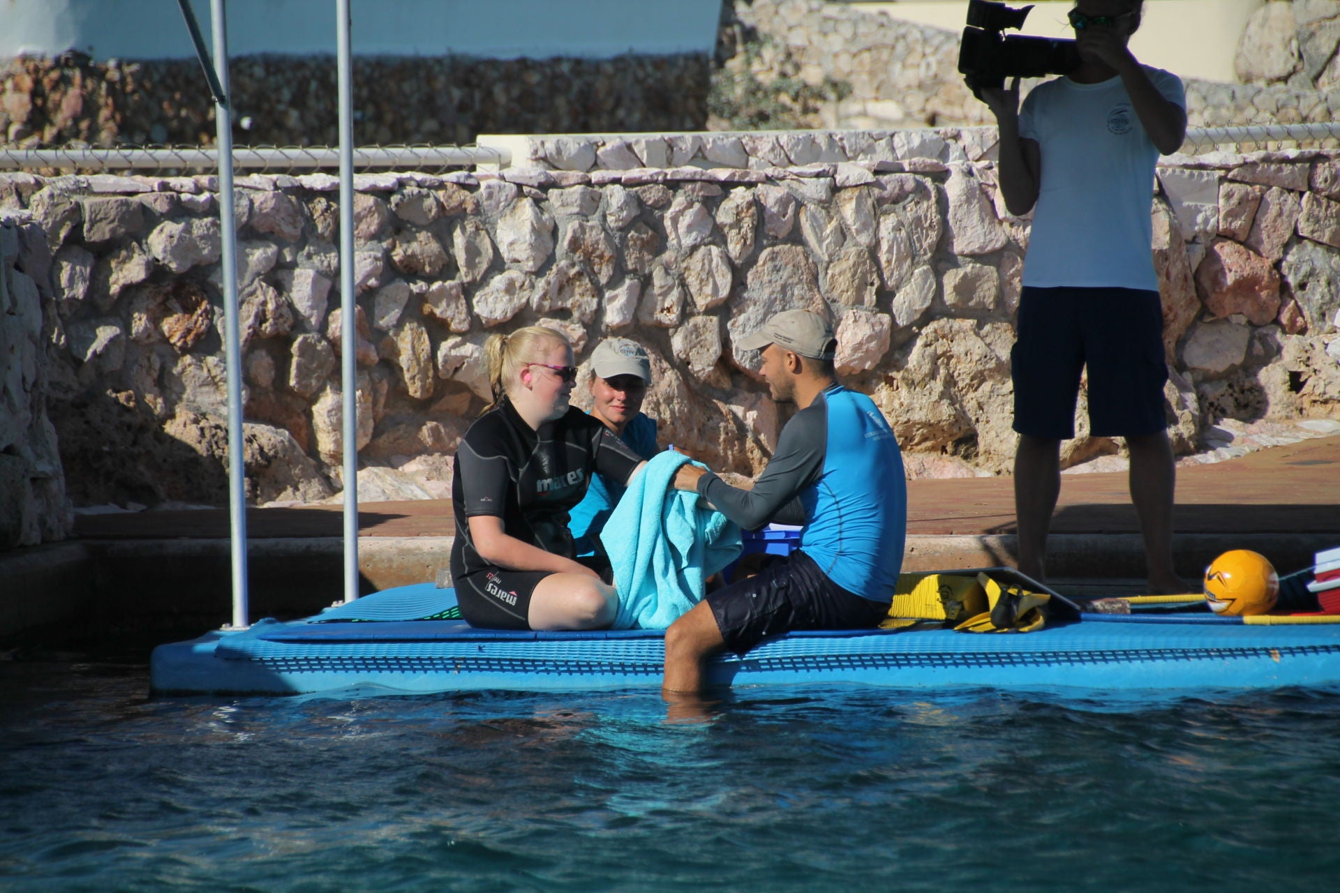 Op het dock ging Nicolette schrijven. De fijne moteriek rechts is beter dan links. Ze heeft veel spanning in de arm. Dit komt omdat ze niet veel ervaring heeft met schrijven. Paul legt een arm van Nicolette in een handdoek en vouwt die handdoek dicht. Als je je arm niet terug trekt , is je arm van mij zegt hij tegen Nicolette. Hij traint zo de spierspanning van de armen. Voor meer kracht in de armen.
