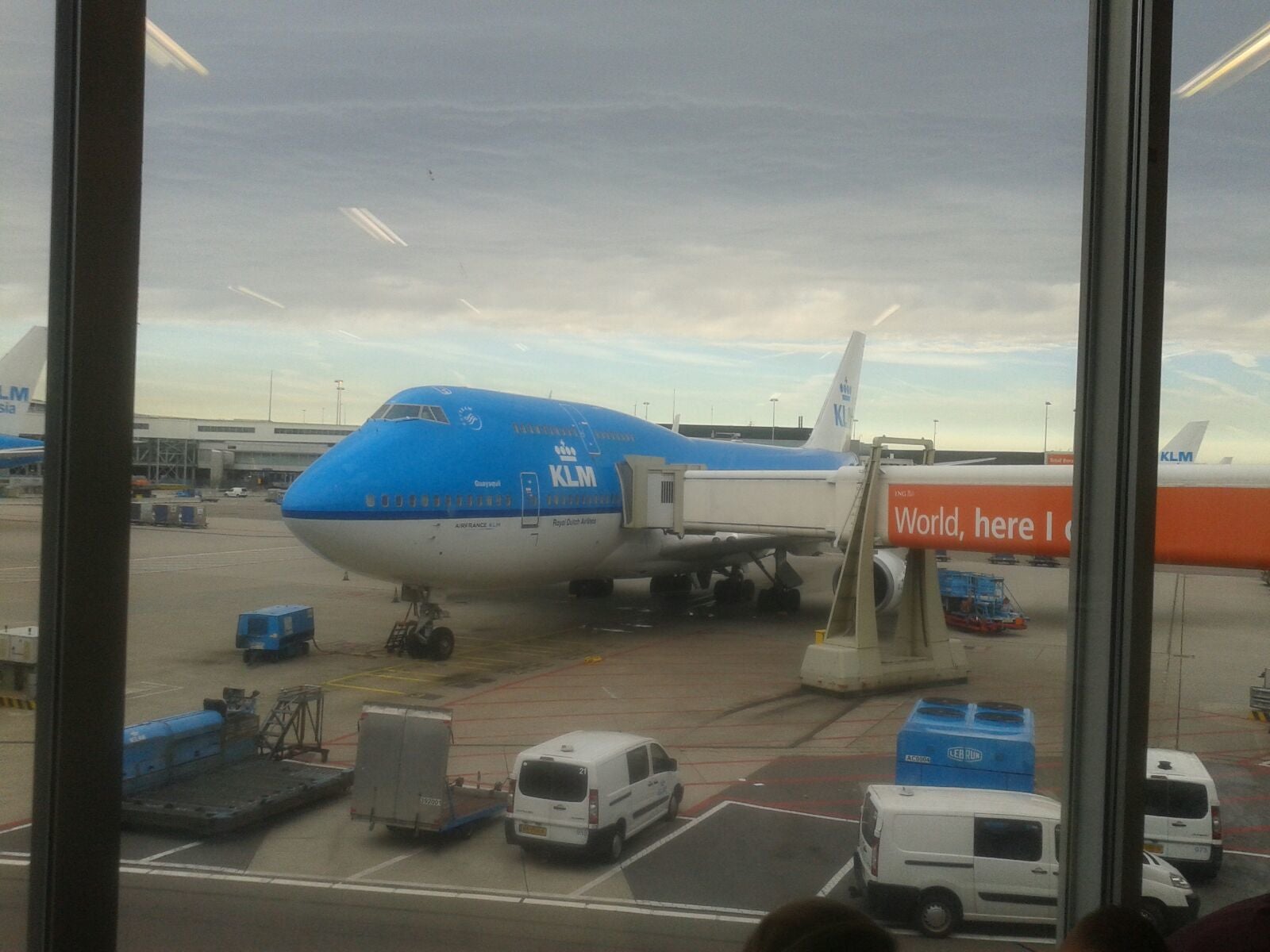 Het was de bedoeling dat dit op het grote scherm bij schiphol te zien was, maar ze waren aan het verbouwen.