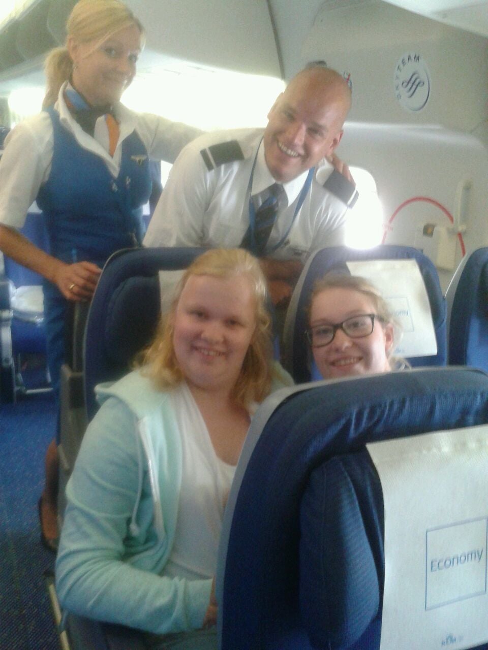 Nicolette is verwonnen door de steward, Emma heeft een slabbetje van de KLM gehad :